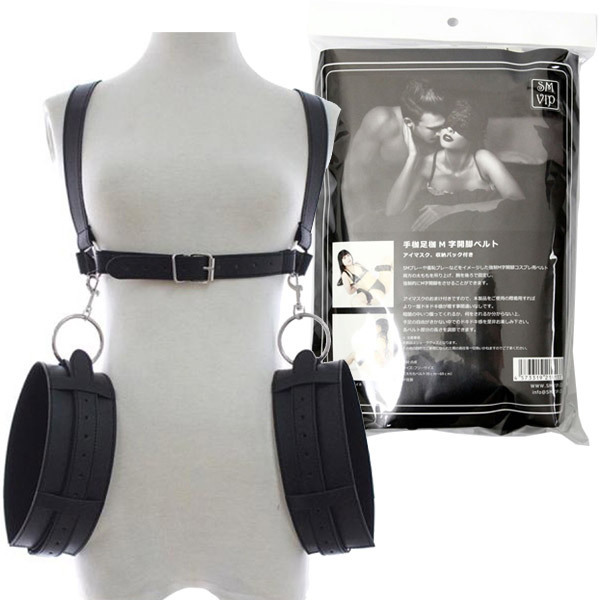 強制的に卑猥な体勢へ拘束!両腕固定+M字開脚ポーズが簡単に出来るSM拘束ベルト&アイマスクのセット。