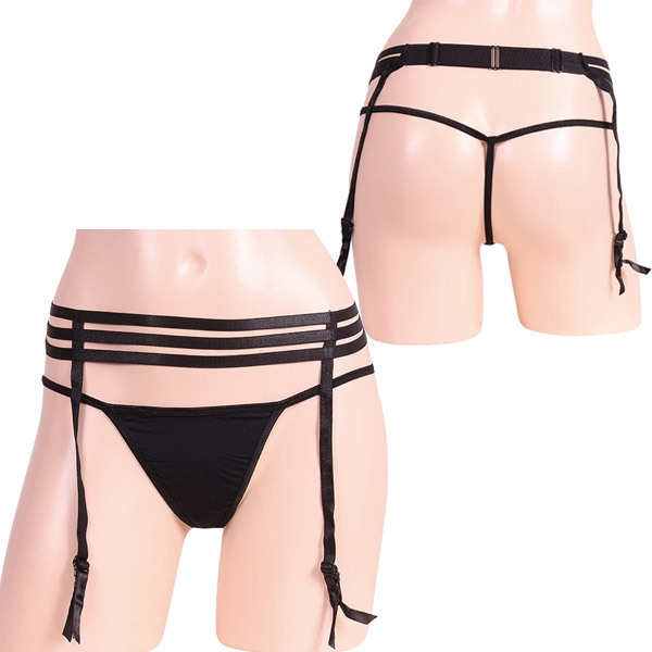 ウエスト部分に3本のラインを均等に配置してシンメトリーな美しさを追求したガーターセット。