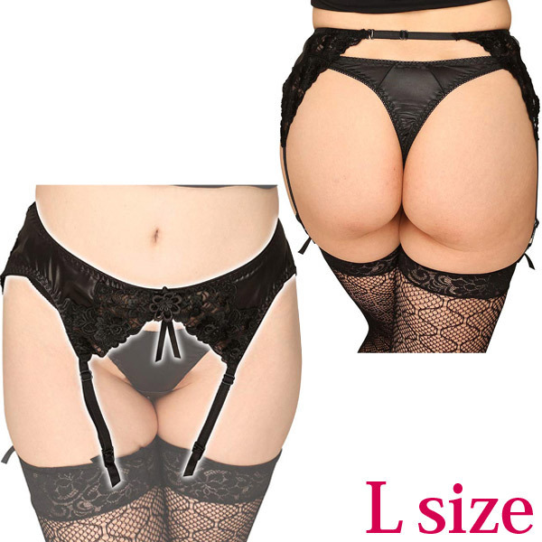 フェリカ&レースコンビ生地ガーターベルト ブラック L