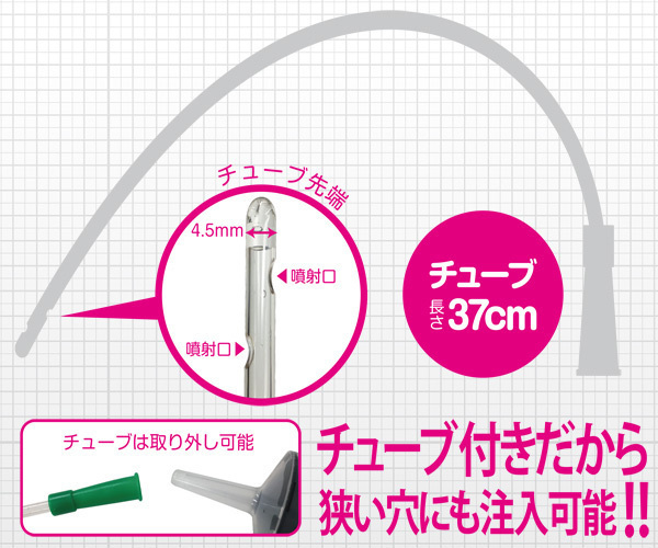 本格的なお医者さんごっこが自宅で手軽に遊べることで人気の「MEDY」シリーズから、お尻洗浄に便利な洗浄用の注射筒が登場!最大幅4.5mm、狭い穴の奥まで行き届く長さ37cmの噴射口を設置したチューブも付属で、取り外し可能なので使用後は綺麗に洗って保管することも◎小口径延長キャップも付いています。