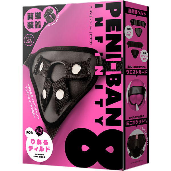 イキかた、責めかた、∞(無限大)!!男性凸女性凸男性凹女性凹色んな組み合わせが楽しめるペニバンです!ディルドはスナップボタンで4箇所留めしてしっかり固定!ベルトを引っ張るだけでフィットする簡単装着!シリコンリングが4種類も付いているのでディルドのサイズに合わせて装着が可能!ポリウレタン素材、レザーナイロンを使用した高品質なベルトを採用し、圧迫しても痛くなりづらいウエストガード付き。